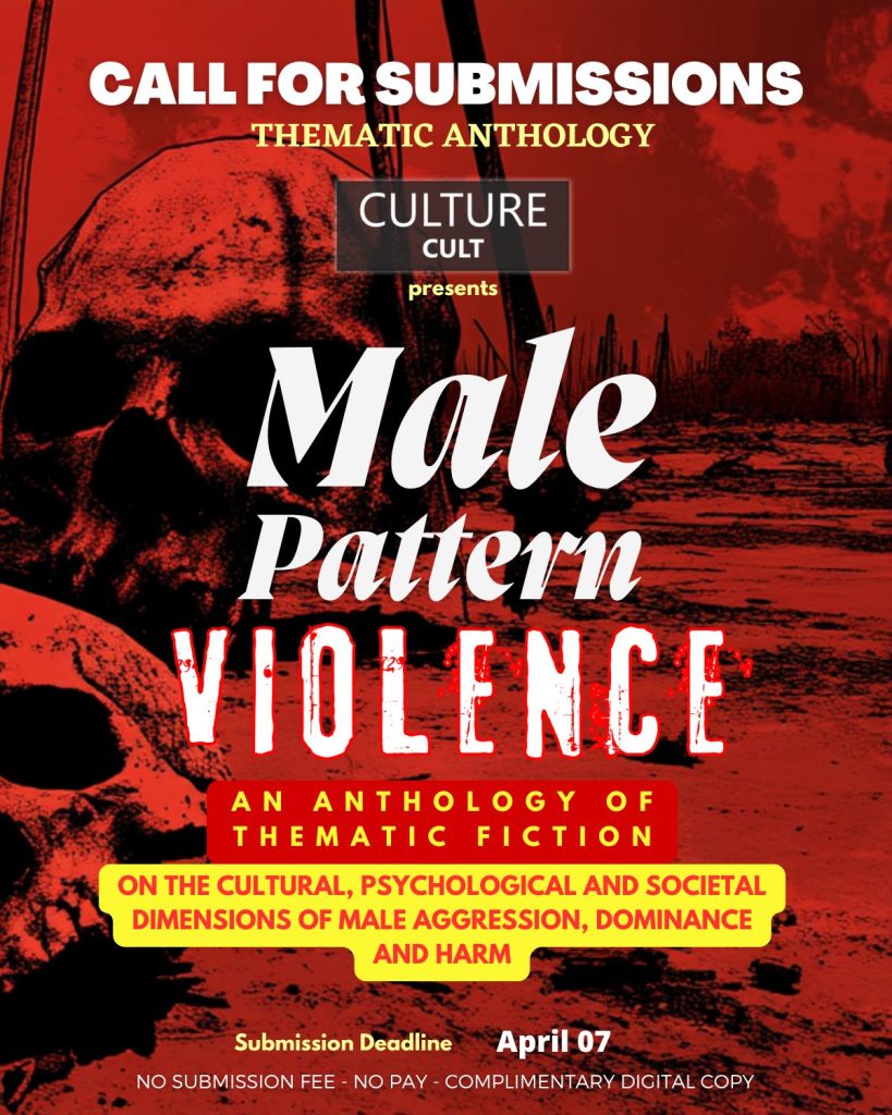 CultureCult Press warmly invites writers from all walks of life to send in their fictions for our upcoming anthology, “MALE PATTERN VIOLENCE”, an anthology exploring the cultural, psychological and societal dimensions of male aggression and violence.